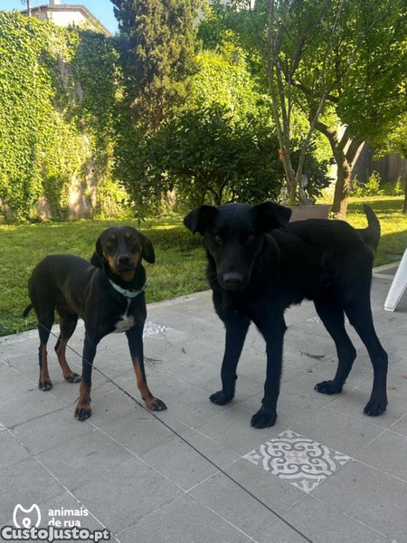 São ambos de porte médio, estão esterilizados, desparasitados, têm microchip e irão receber a vacina da raiva.
