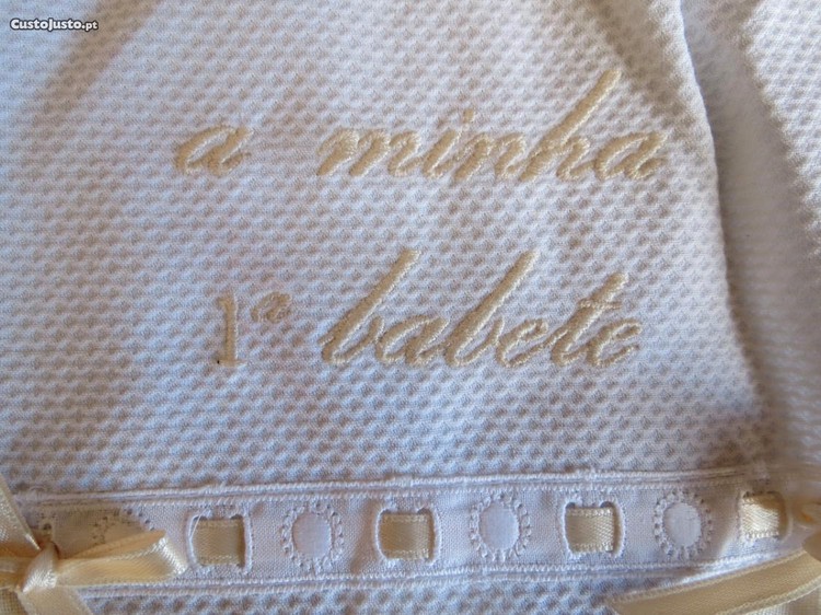 Babete branca, debruada e bordada a bege