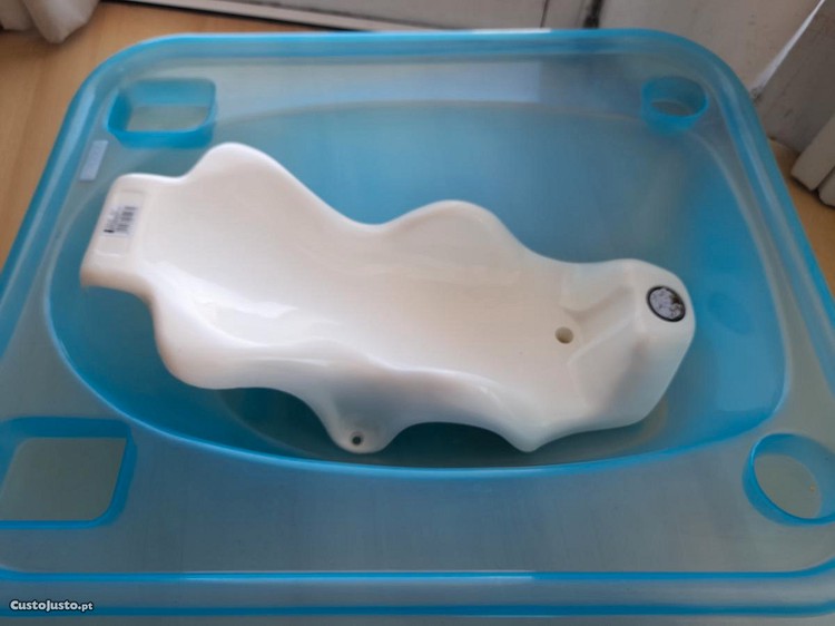 Banheira de bebé com apoio para deitar bebé, que pode usar ou não usar.