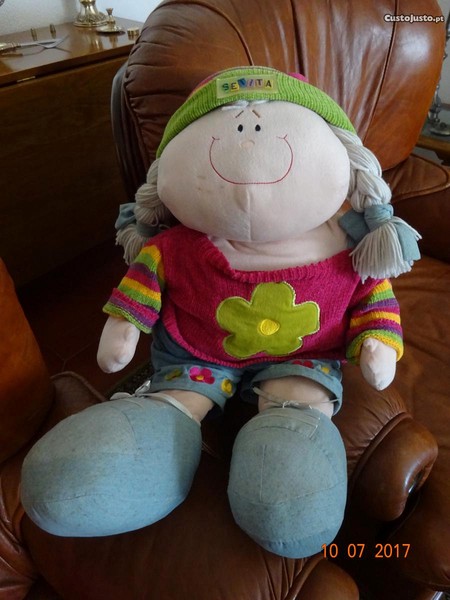 Boneca e almofada em algodão, com muito pouco uso. (30,00EUR)Também fazem parte do mesmo conjunto:Candeeiro de tecto - 25,00EURCandeeiro de mesinha - 25,00EURTambém praticamente novos, com muito pouco uso.