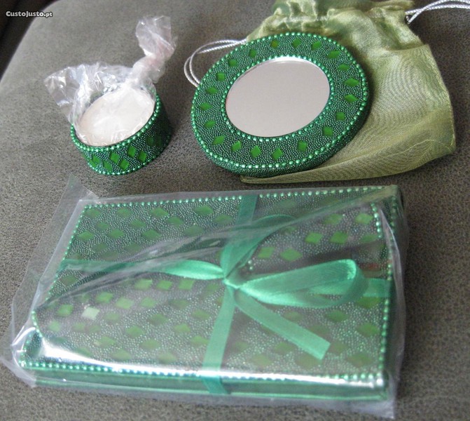 Preço: 2 €Conjunto Caderno c/ caneta, espelho e suporte c/ vela