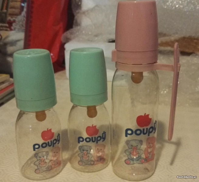 Conjunto inclui um biberão de 250ml e dois biberões de 150ml, com oferta de 2 prende-chupetas Biberões em plástico termoresistente, com tetina e tampa para beber água Em várias cores (verde, rosa, azul, lilás, amarelo) Tenho 5 conjunto disponíveis, mas também posso vender individualmente