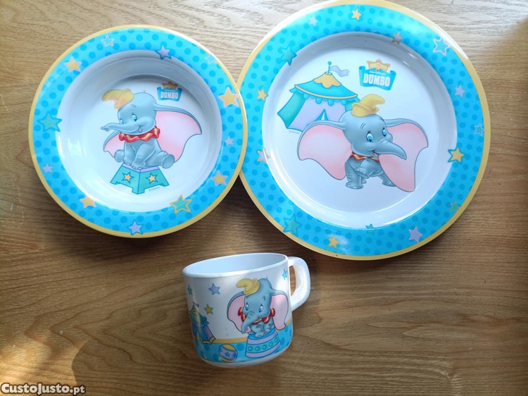 Preço: 20 €Conjunto de louça infantil com o tema de Dumbo