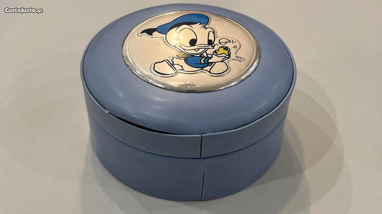 guarda joias/Baú para bebé -criança com prata na tampa - Pato Donald da Disney