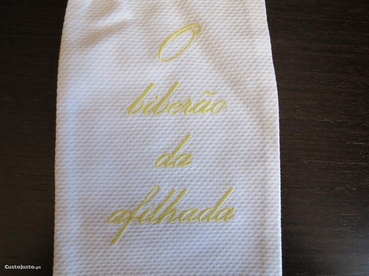Saca para transporte do biberão em piquete branco e fita, e biquinho amarelo e bordado a amarelo