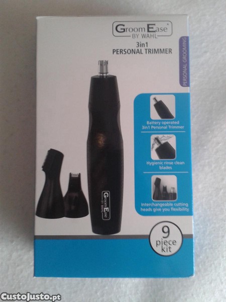 APARADOR ou corta pêlos de nariz, orelhas, sobrancelhas, etc conjunto de 9 peças , incluindo uma prática base para descanso modelo ergonómico para mais fácil manu-seio, com 3 cabeças de corte - peso 220 grs c/cx