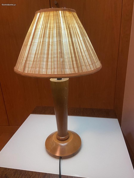 Candeeiro em madeira com abajur em tecido. Muito simples e bonito. Entrego em mão na Maia/Porto em horário e dia a combinar.
