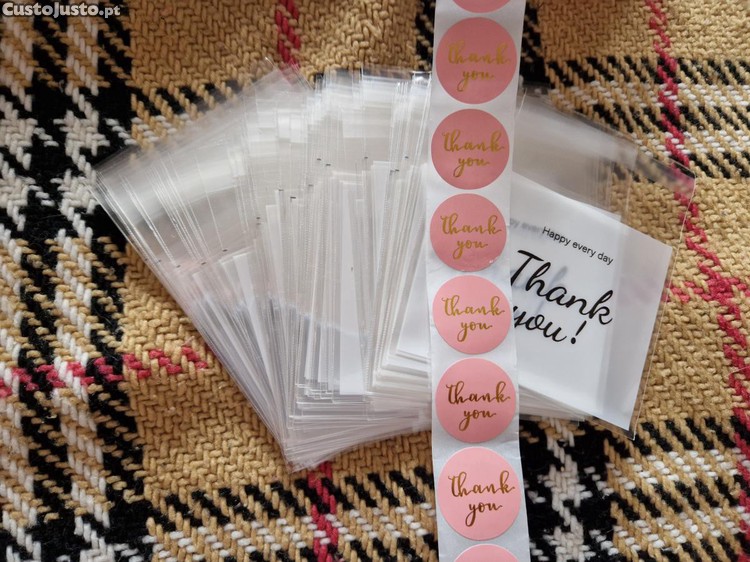 Personalize ainda com os autocolantes rosa com letras douradas "Thank you", diametro de 2.5 cm.