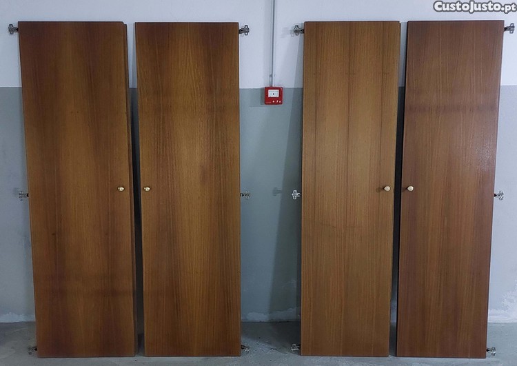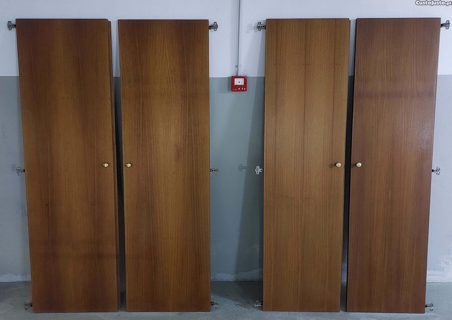Dois conjuntos de duas portas de roupeiro de madeira lisa.