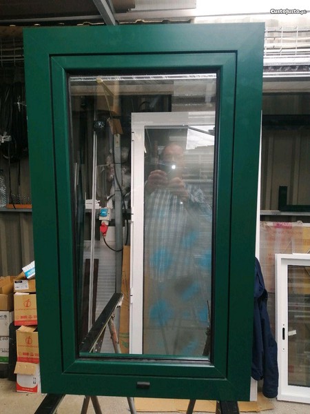 Vendo janela de abrir LxA =0,60x1,00 em alumínio lacado verde de rutura térmica com vidro duplo e ferragem oscilo batente. Nova. Vendo janela de correr em alumínio lacado preto com vidro duplo. Nova com fechos laterais. LxA=1,00x0,90 na série F200 (Confort). Tenho outras medidas e cores de correr e abrir tudo novo com vidro duplo.