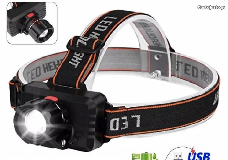 Preço: 7 €Lanterna LED de cabeça recarregável USB Zoom