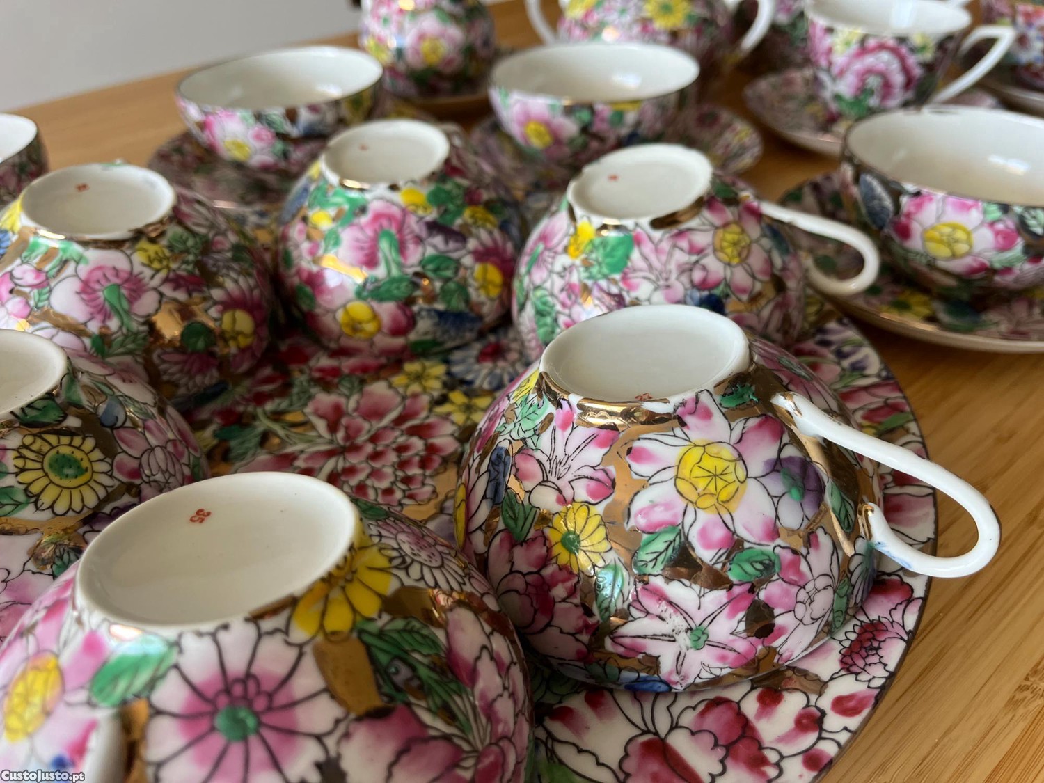 Serviço Chá Porcelana Chinesa Famille Rose Wan Hua