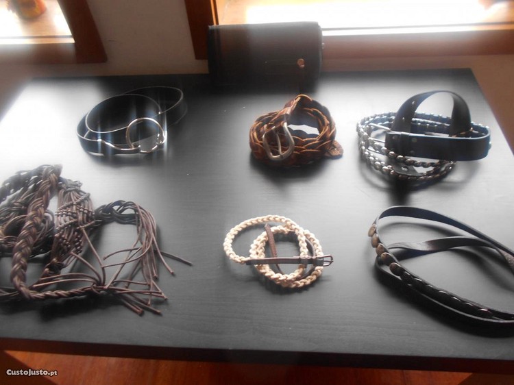 Conjunto de 6 cintos modernos e uma carteira em bom estado.