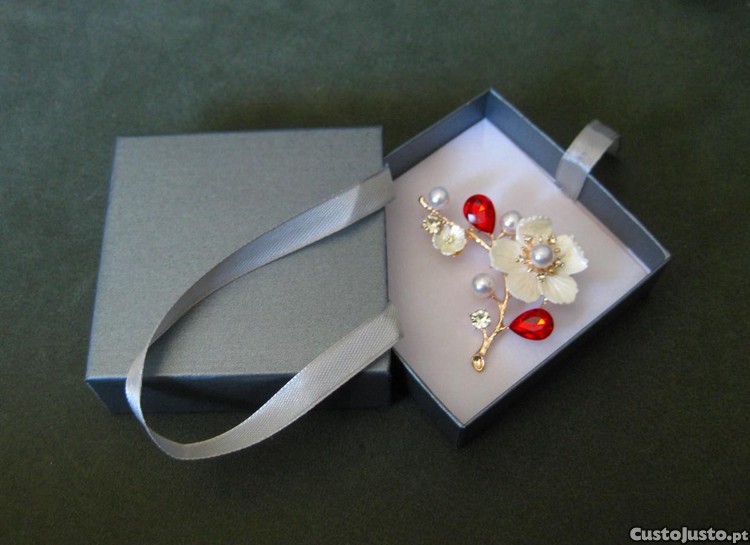 Preço: 7 €Alfinete / Broche / Pregadeira Ramo c/ Perolas e Pedras Vermelhas NOVO