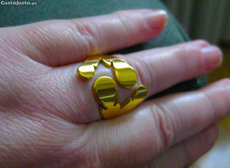 Preço: 5 €Anel Aço Dourado Abraço Elegante NOVO