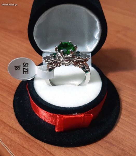 Anel com 13 Pedras verdes, sendo a principal com 8mm.