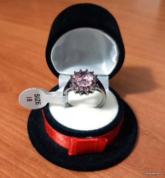 Preço: 5 €Anel Preto com Pedras Rosa CZ - Novo
