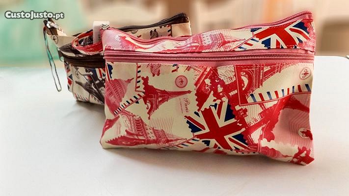 Vendo este conjunto de duas bolsas cosméticas novas com alça, onde pode transportar os seus produtos de beleza no seu interior de forma elegante e discreta.