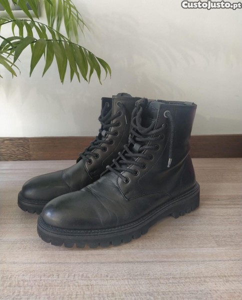 Botas de Combate Pepe Jeans em Couro Preto, Tamanho 42 EUR / 9 EUA