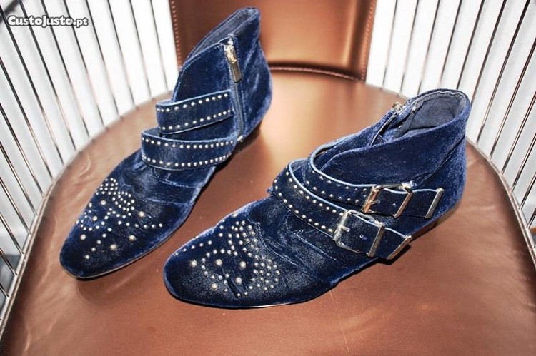 Preço: 12 €Botins azuis escuros com aplicações em dourado STRADIVARIUS T.40