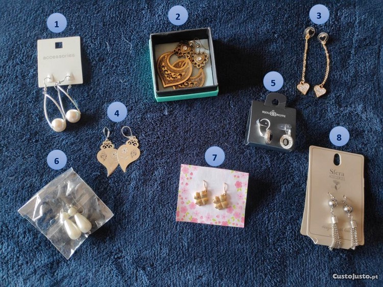 Vendo brincos novos, cada par a 7 euros.