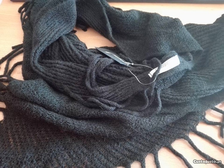 cachecol 100% acrilico, novo, tom preto, porte não incluido