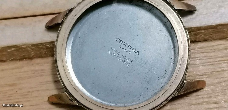 Caixa relógio certina em plaque. Ver estado e dimensões. Não tem o aro superior.apresentado tal como se encontram.ver fotos e estado.35euros ou troco por outro artigo relógio.