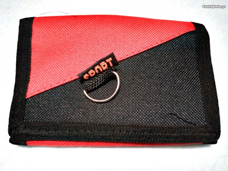 Carteira de cor preta e vermelho.