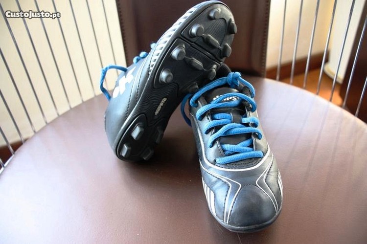 Chuteiras KIPSTA pretas com cordões azuis t.29