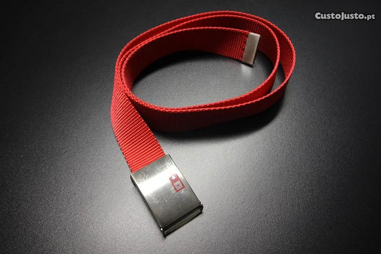 Preço: 10 €Cinto em nylon vermelho com fivela metálica ajustável da Fourstar Vintage