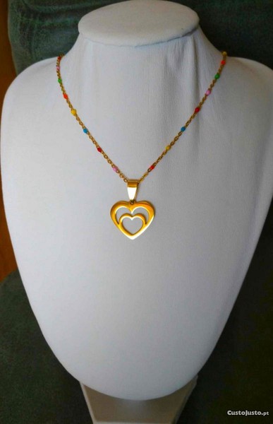 Preço: 5 €Colar Aço c/ Coração e Fio c/ Pedras Coloridas NOVO