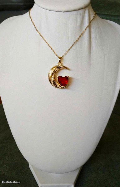 Preço: 5 €Colar Aço c/ Lua c/ Coração Vermelho - SALDO