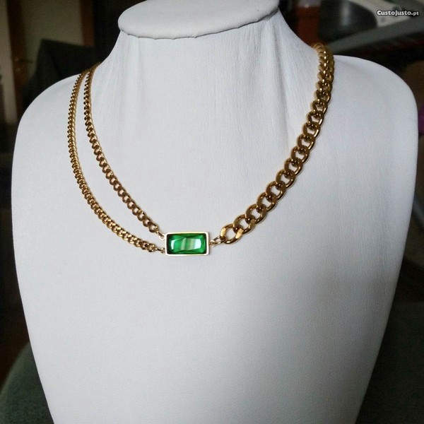 Preço: 5 €Colar Aço c/ Pedra Verde NOVO