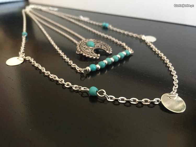 Colar com 3 voltas, novo. Entrega em mão possivel na Maia a combinar, ou envio pelos CTT. Valor não inclui portes. Não envio á cobrança. Pagamento por transferência bancária ou MB WAY