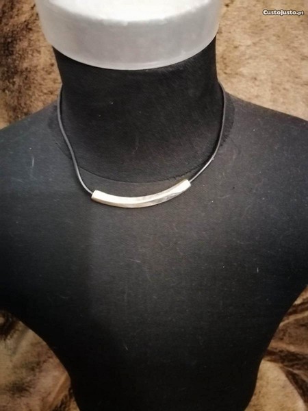 Colar com fio em borracha, para atar, com peça torçida, com banho de prata, por 3EUR + portes de envio.