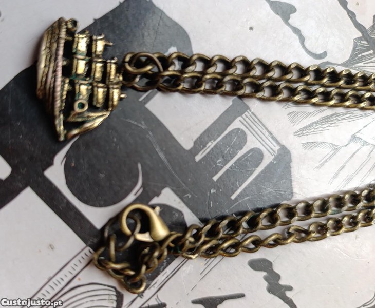 Colar/ Fio metal grosso e comprido, com Caravela que é de Bronze