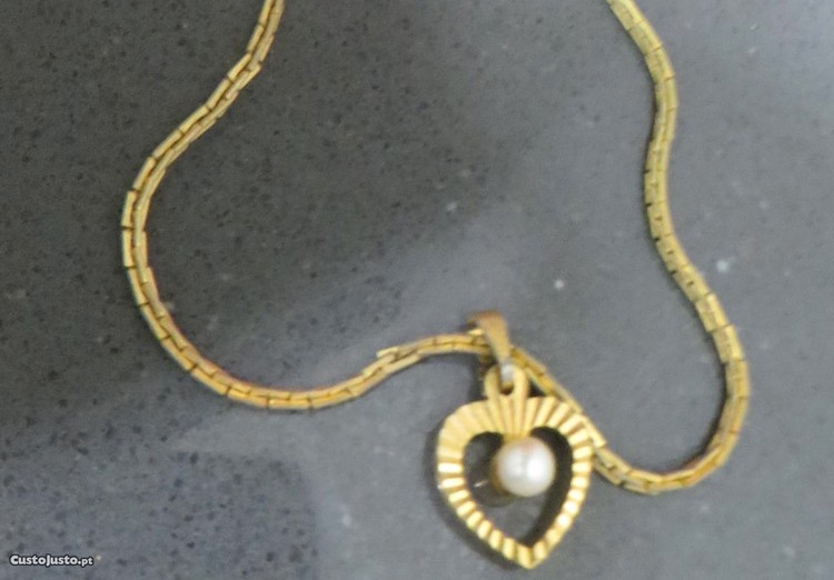 Colar Fio trabalhado em espinha, com coração igual e com uma pérola no meio Como Novo