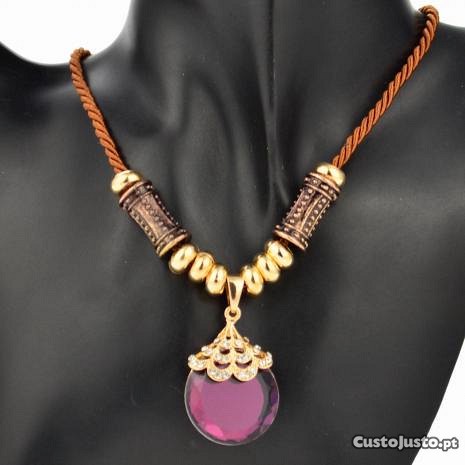 Vendo colar em tons de castanho com pendente roxo