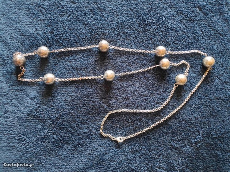 Vendo colar prateado com bolas prateadas, em bom estado.