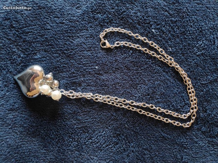 Vendo colar prateado com coração e pérolas, em bom estado.