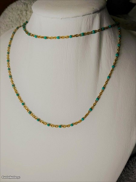 Conjunto de Colar e Pulseira c/ Contas Azul Claro NOVO - SALDO