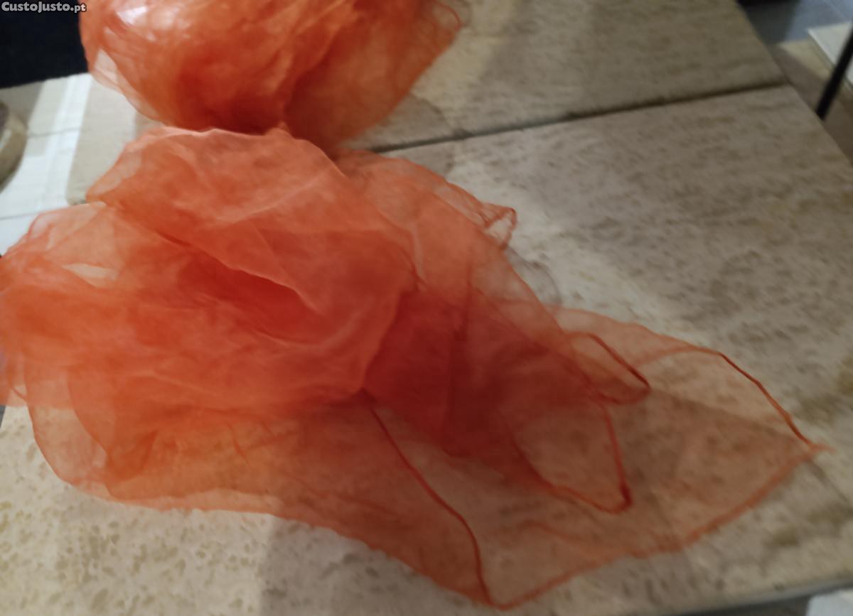 Lenço, em Shantung, cor Salmão, ou mais como em cor coral escuro