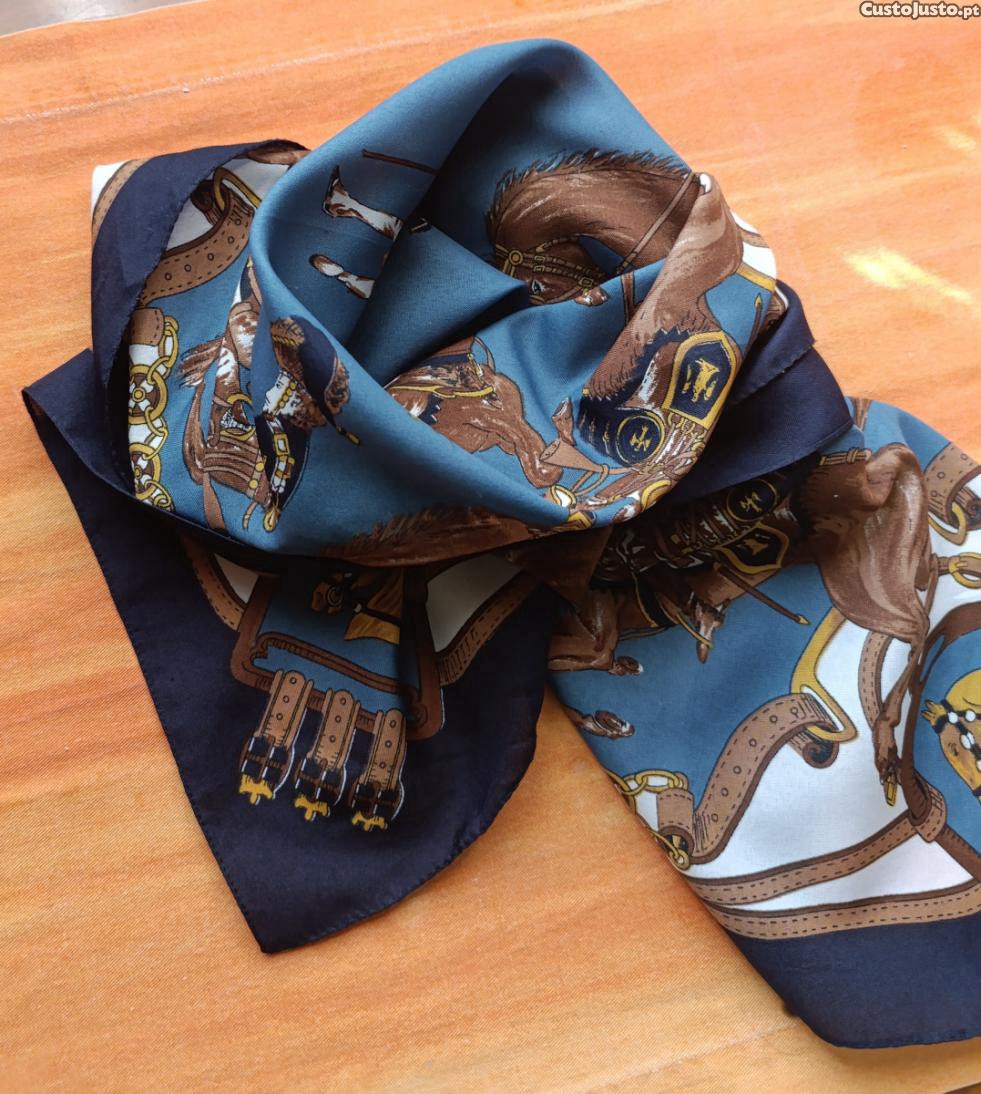 Lenço fundo azul, estampado motivos monárquicos - Fabricado em Itália