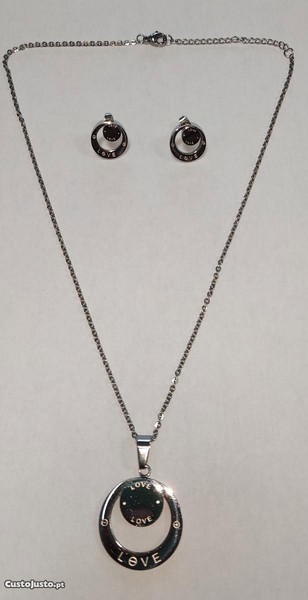 Preço: 15 €Lindíssimo conjunto colar + brincos LOVE