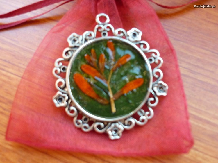 Medalhão de coleção com volta para pendurar, feito com toda a perfeição com plantas naturais protegidas com verniz resina. Trabalho único.OFERTA DE UMA SAQUINHA PARA PROTEÇÃO.