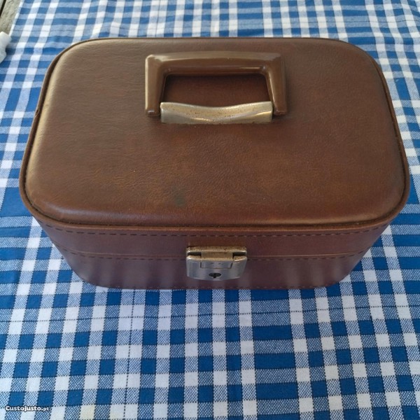 Nécessaire para senhora, vintage usado sem chave. É imitação de pele castanha.