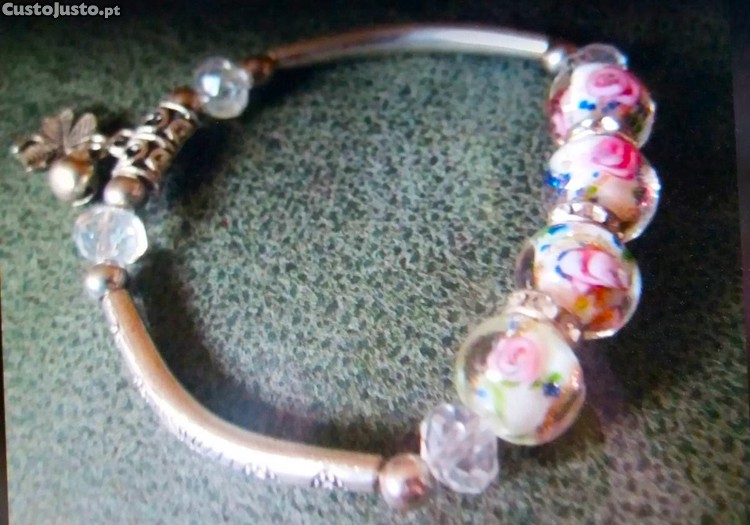 Preço: 2 €Pulseira Ajustavel Contas de Vidro c/ Flores Dentro NOVO