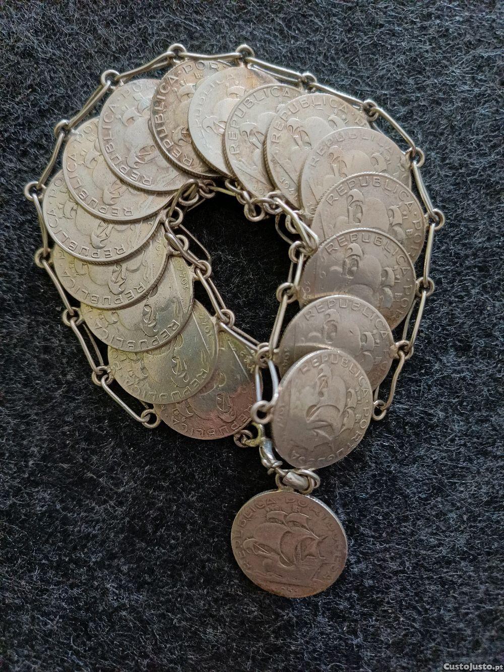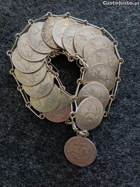 Pulseira com moedas de 2$50 anos 40 e 50 em liga de prata 650 em perfeito estado de conservação