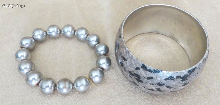 Preço: 6 €Pulseiras metal 1 larga pele cobra e 1 esférica - O preço indicado é para as 2 pulseiras