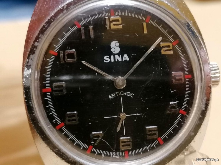 relogio antigo corda manual SINA bom estado, esta a funcionar , mostrador em perfeito estado , a caixa é cromada , tem, sinais do uso , ver fotos . Bracelete em pele nova. apesar de estar a funcionar e manter o tempo , seria recomendada lubrificaçao pois esteve guardado durante muito tempo tem tendencia á secagem dos oleos . vendido tal como se encontra.Valor sessenta e cinco euros.